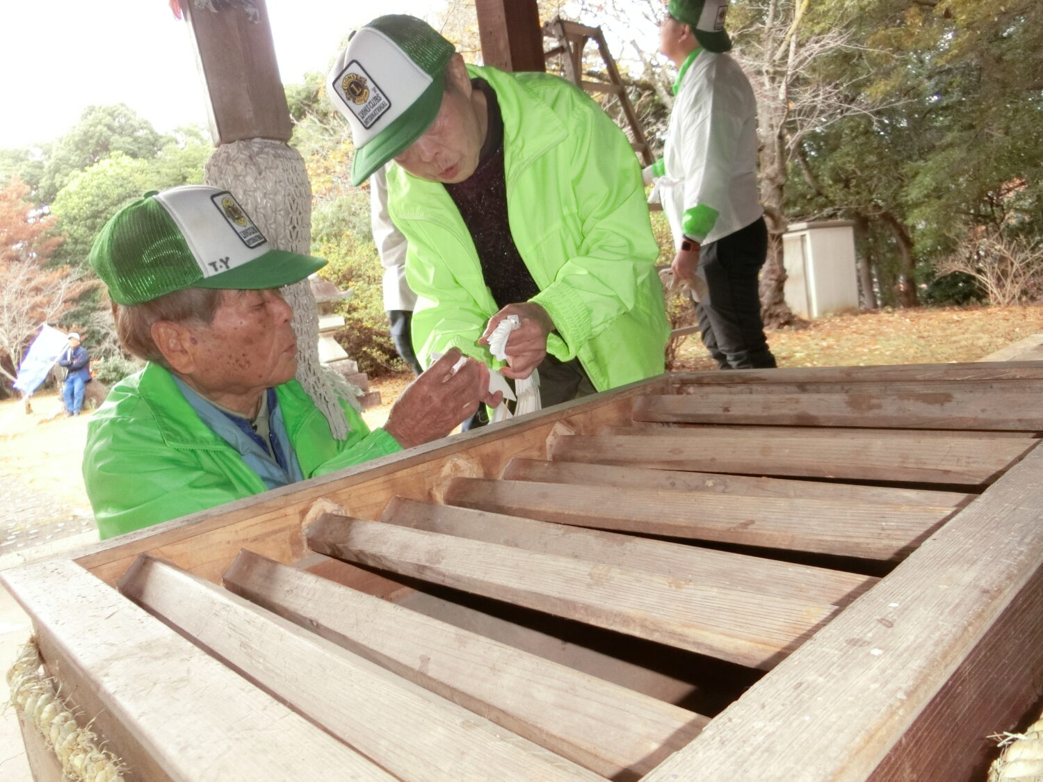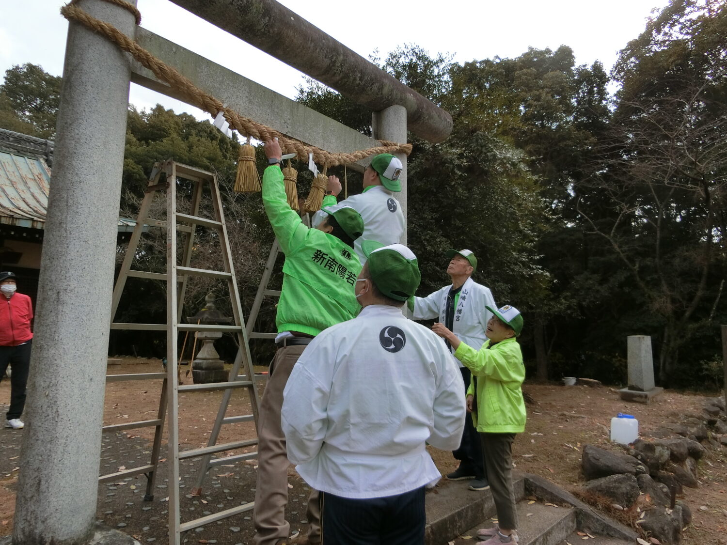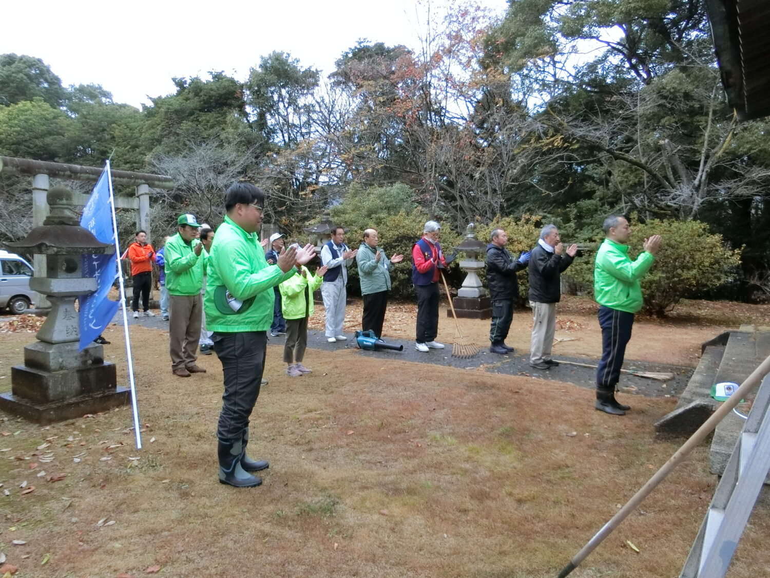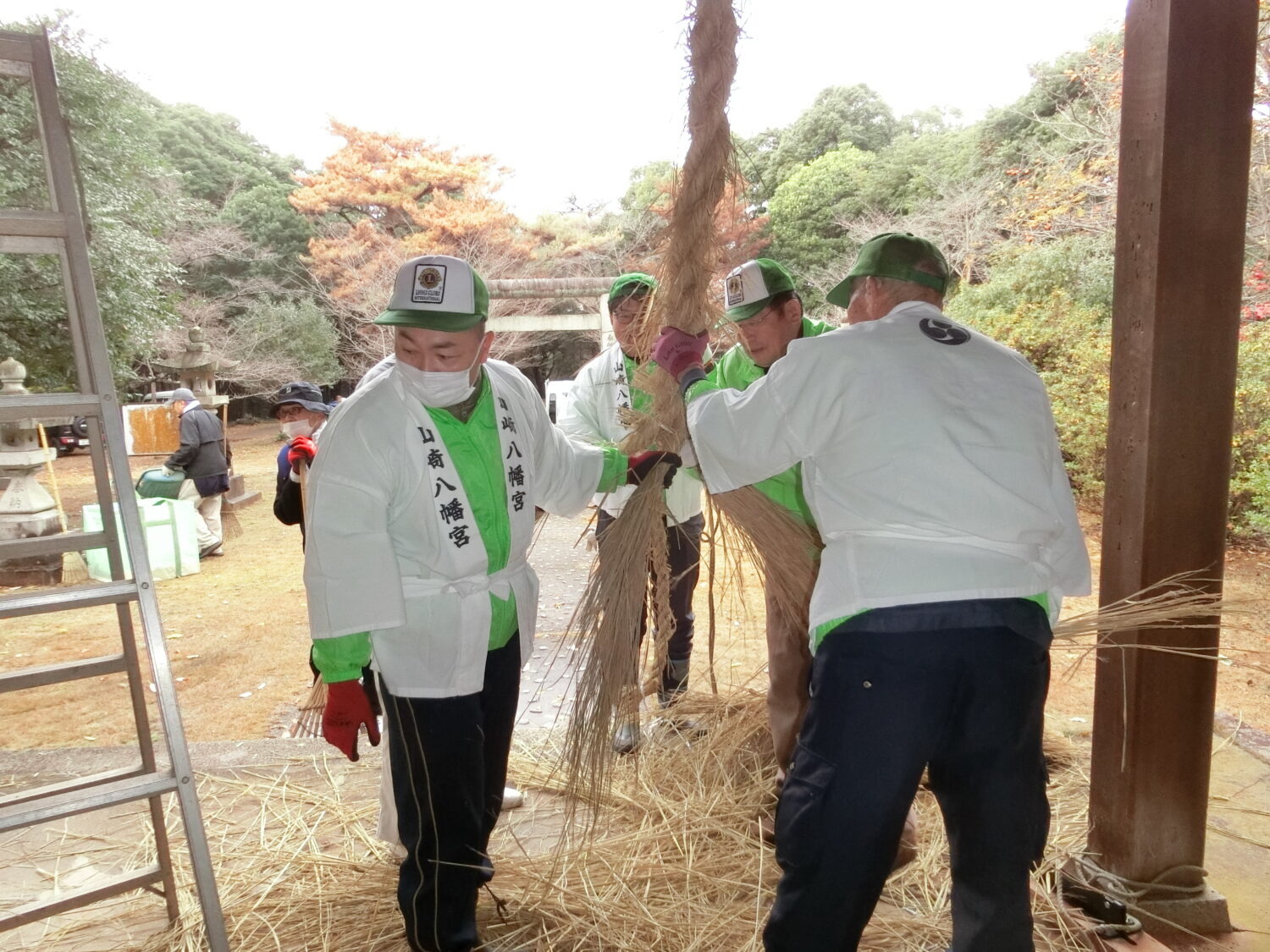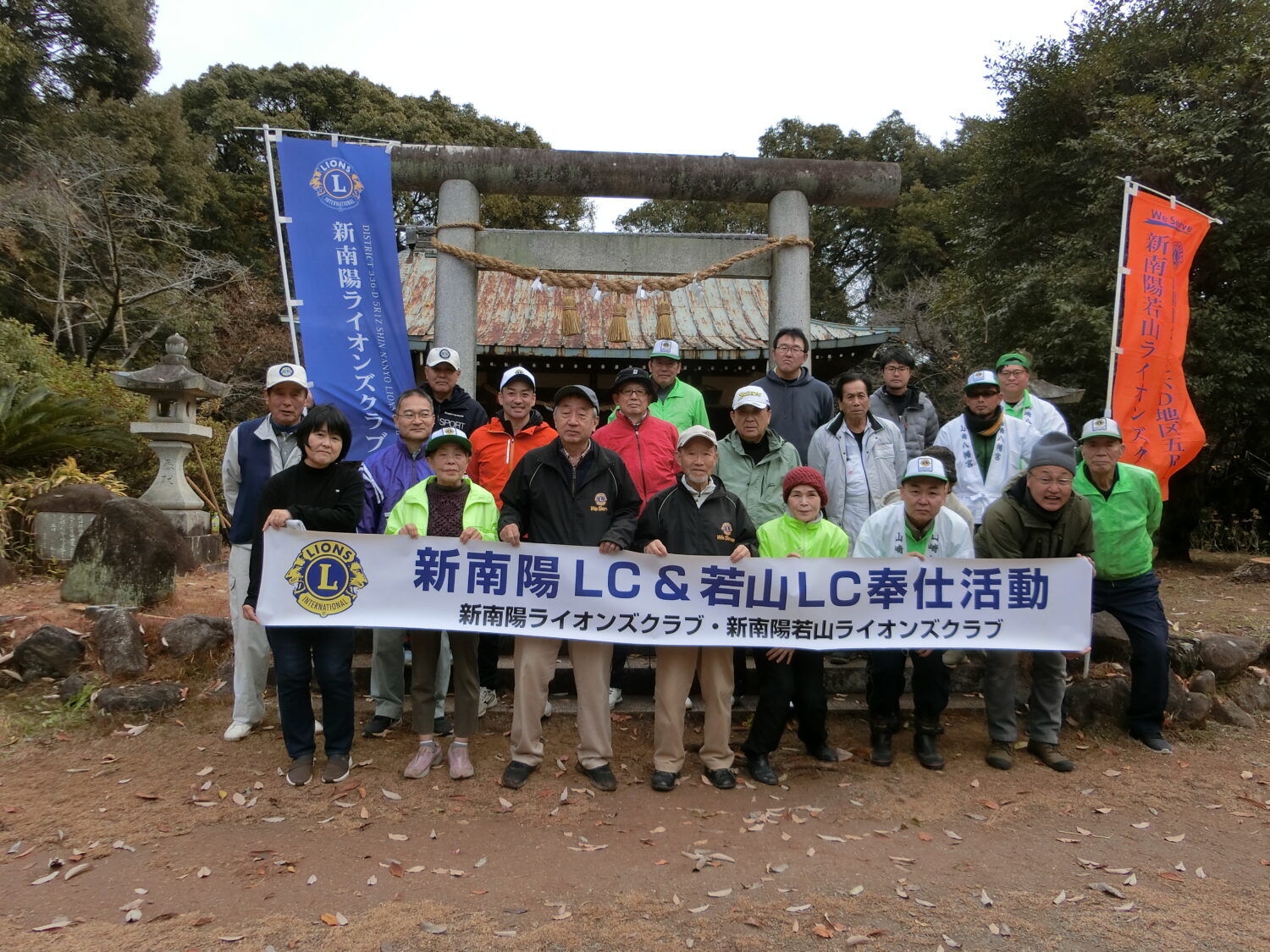 令和7年12月21日(日) 新南陽ライオンズとの合同アクティビティ新南陽若山ライオンズクラブが主管で開催致しました。今回で23回目の行事となります富田護国神社しめ縄奉納・境内環境整備ですが、平成14年に護国神社の環境整備をして居られた遺族会も高齢化し思うような手入れが出来ず鳥居のしめ縄も普通のわら縄がかけてあるのを見て、しめ縄奉納を始めたのです。この社には国の平和、国民平和を願って1200有余の若い御霊が祀られています。今ある民主主義と平和は戦禍に散った御霊のお陰です決して荒廃させてはなりません。 ※合同奉仕主管、新南陽若山ライオンズクラブ大内会長に合わせてて拝礼