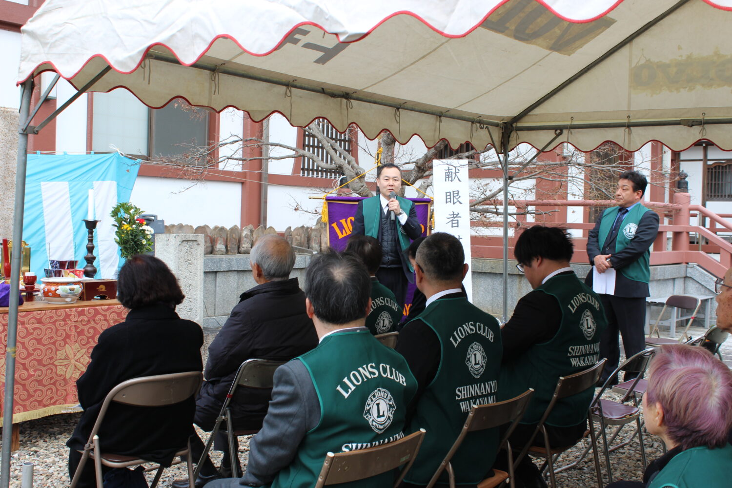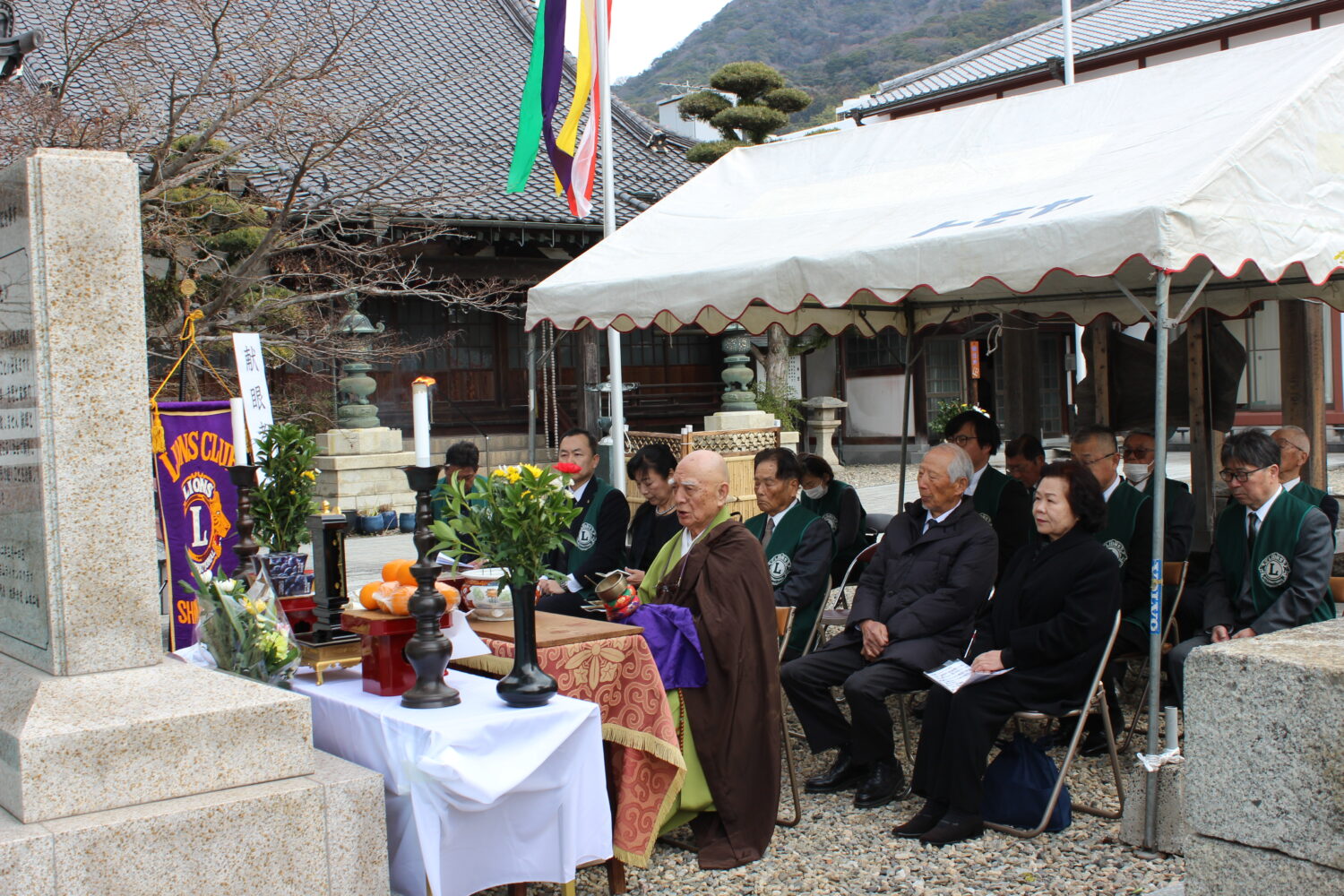令和8年3月8日日曜日、献眼者慰霊碑建立6周年目の慰霊法要を開式致しました。新南陽若山ライオンズクラブは1990年3月14日に結成、5月6日開催のチャーターナイトにおいて全国2952番目のクラブとして認証それ、奉仕活動の第一目標をアイバンク設立基金、献眼活動としアイバンク設立基金20万円、会員全員27名が献眼登録したのが始まりです。翌年1991年からはアイバンク設立基金チャリティショーを市民参加のもと開催し、献眼登録活動に精を出し10年目に二名様の献眼、20年目にいみじくも二名様の献眼、30周年には計14名様の献眼と、献眼登録1,375名様、アイバンク献金10,730,000円の実績を上げる事が出来ました。献眼活動はライオンズクラブ国際協会の最重要な奉仕活動でありながら人それぞれの思いから一番取り組み難い奉仕活動であります。その活動に応えて献眼頂いた献眼者の崇高なる人間愛と、ご家族のお気持ちを何としても顕彰致したくクラブ結成30周年の記念事業として会員である真福寺境内に献眼者慰霊碑を建立し、毎年3月第二日曜日を献眼者慰霊法要の日と定め顕彰に勤めております。昨年は建立5周年の節目の年であり、ご遺族、ライオンズクラブ地区役員各位にもご出席頂きましたが本年は内輪での慰霊法要と致しました。