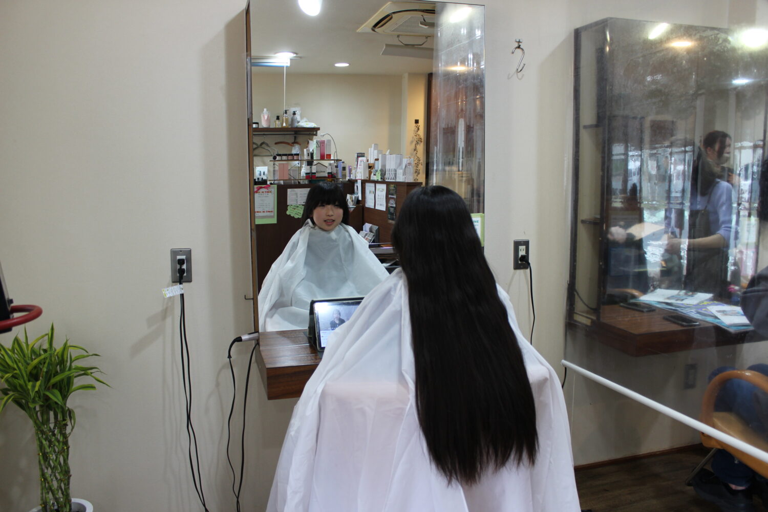 ※菊川小学校5年生の井上咲蘭(さくら)ちゃんは日刊新周南のヘアードネーションの記事をみて私も人助けがしたいと思い、3年間、髪を伸ばして今回のヘアードネーション思いが叶いました有難うございます。 ※ヘアーを受け取る大内会長