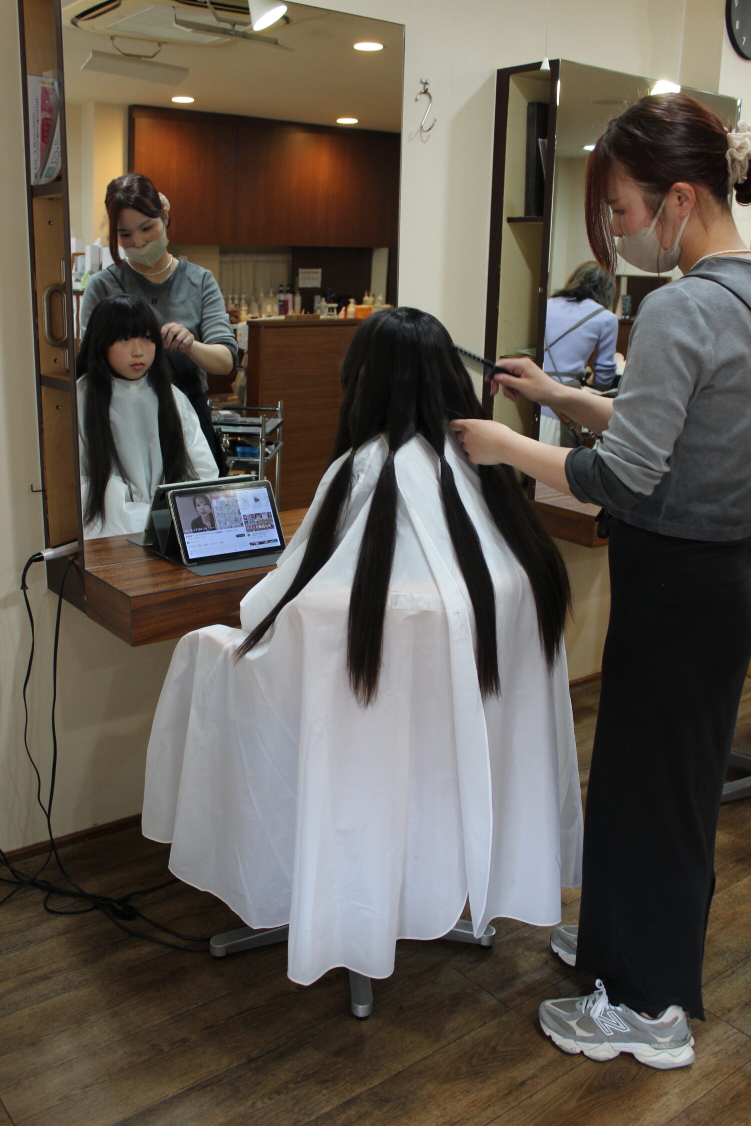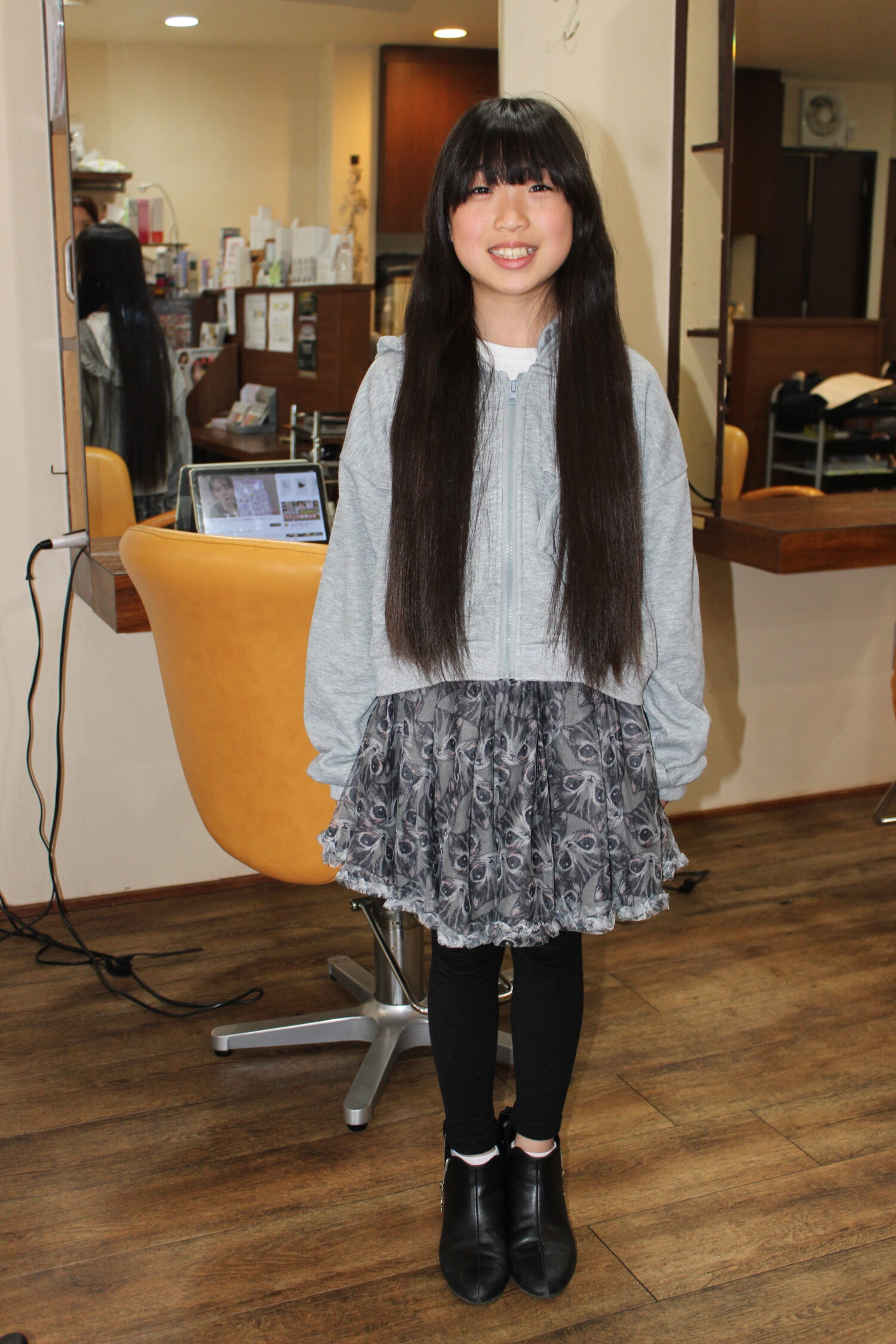 大門祈愛(のあ)ちゃんは、2023年8月にお父さんからヘアードネーショの話を聞き私も人助けになることをしたいと思い立ち小学二年生のとき33㎝に伸びた髪を新南陽若山ライオンズクラブに贈呈して頂きました。そのときもう一度頑張ってヘアードネーショをしますと誓っておられましたがその気持ちが叶い本日二回目のヘアードネーションとなりました。のあちゃんの優しい人間愛に頭が下がりますありがとうございます。 ※カットする前の大門祈愛ちゃん 可愛い