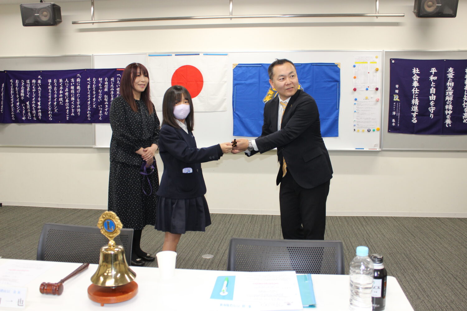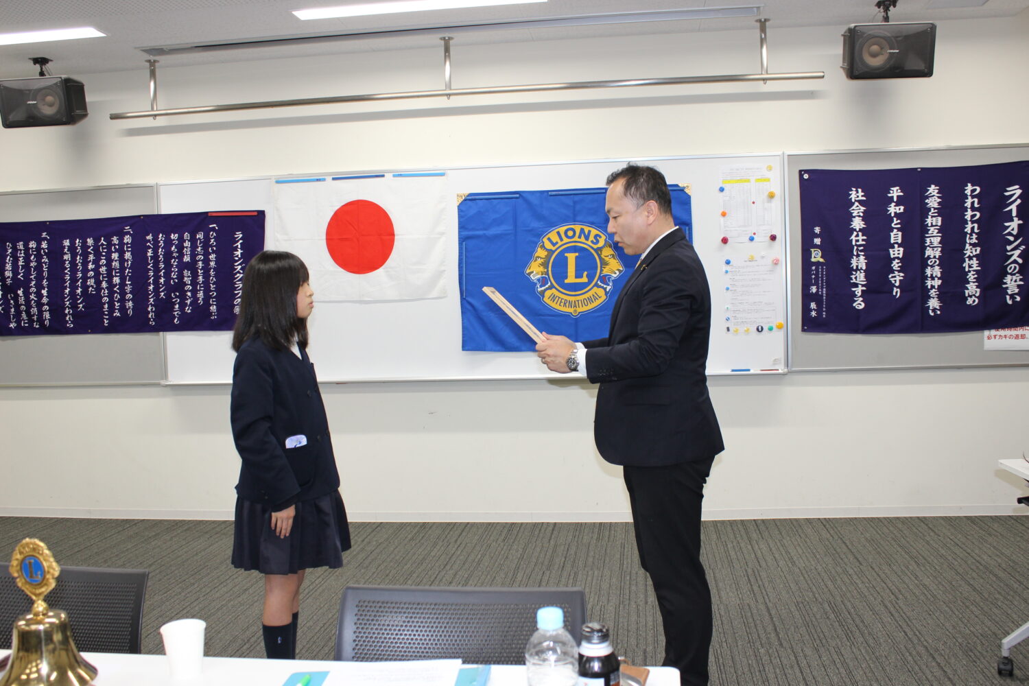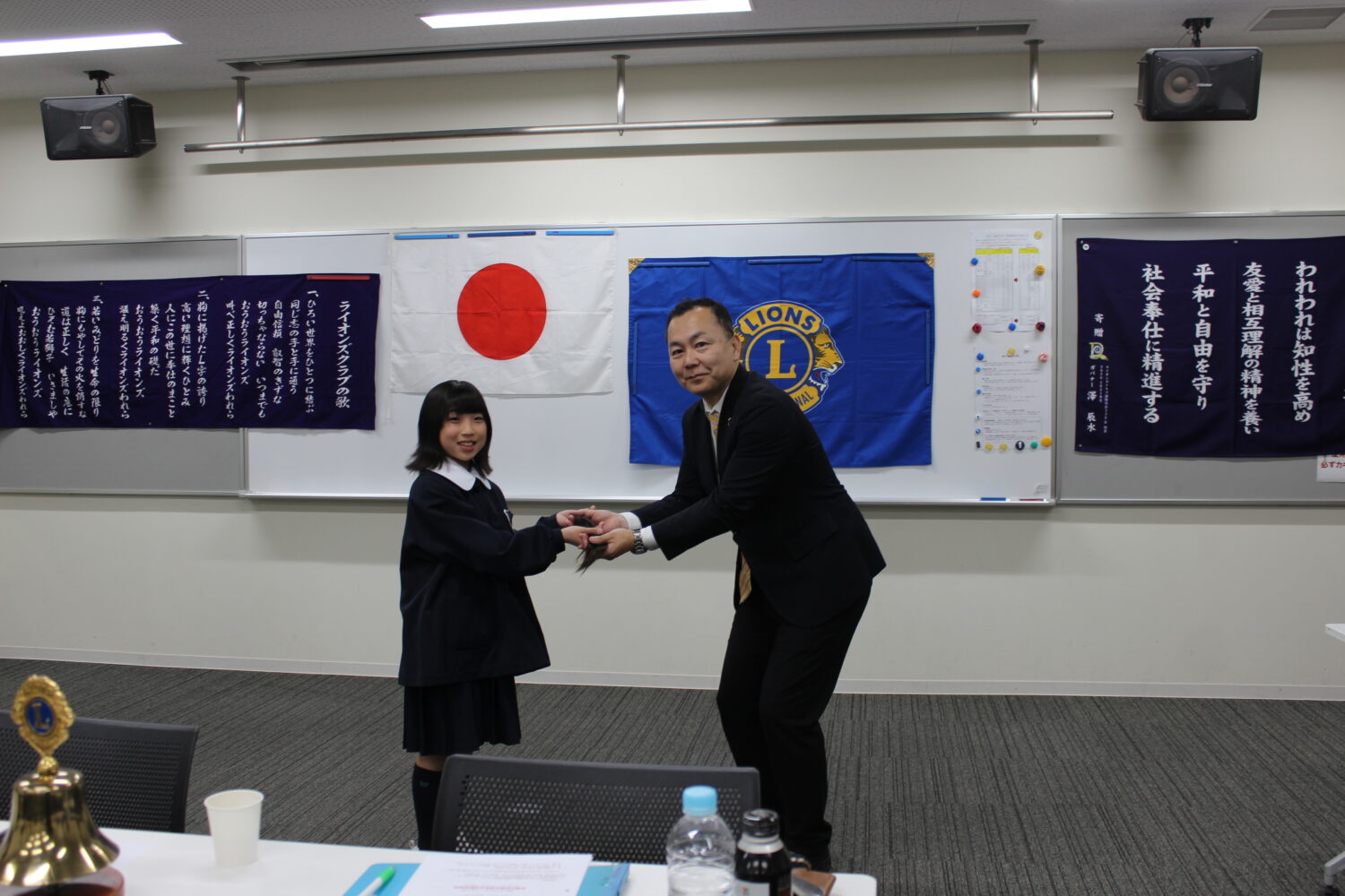 令和8年4月9日(木)新南陽若山ライオンズクラブ第一例会会場に於いて2名の小学生に感謝状を差し上げました。 ※2名の小学生のご家族 大門様と井上様